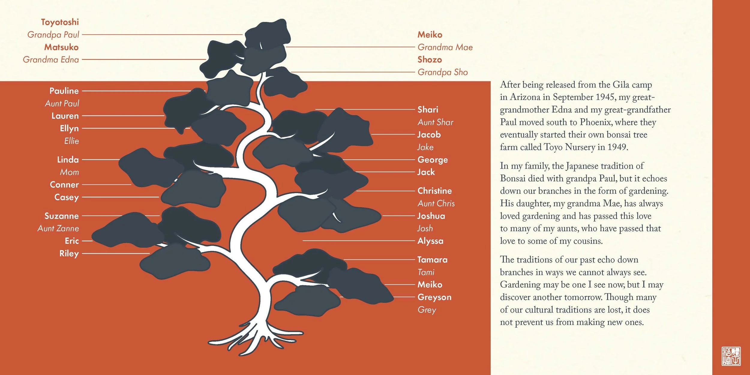 My cultural identity has always been muddled as a fourth generation Japanese American and mixed race woman. It has always been something I wanted to dive deeper into understanding about myself, and I got the chance to explore it through this project. To aid me in my journey, I had my Japanese American family members to fill out a survey I created, asking them about their cultural identities. I’ve used their responses as well as firsthand accounts from my great-grandmother Edna to support my own thoughts around how the discrimination and incarceration of Japanese American people—and my own family—have affected our cultural identities generations later.